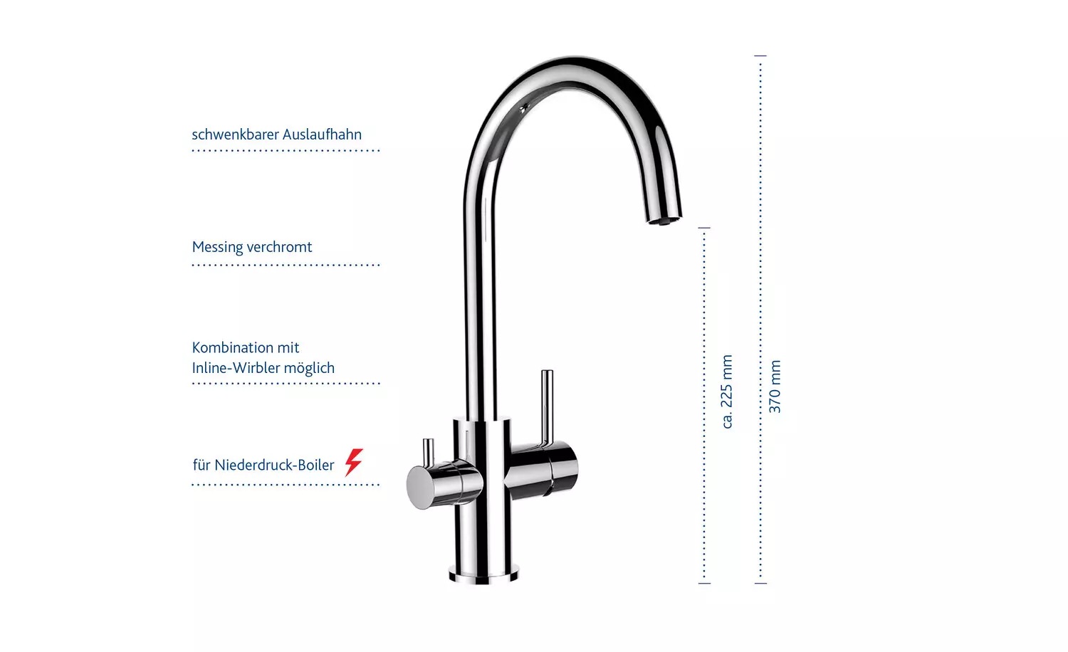 - Filter- und Brauchwasser in einer einzigen Armatur für maximalen Komfort