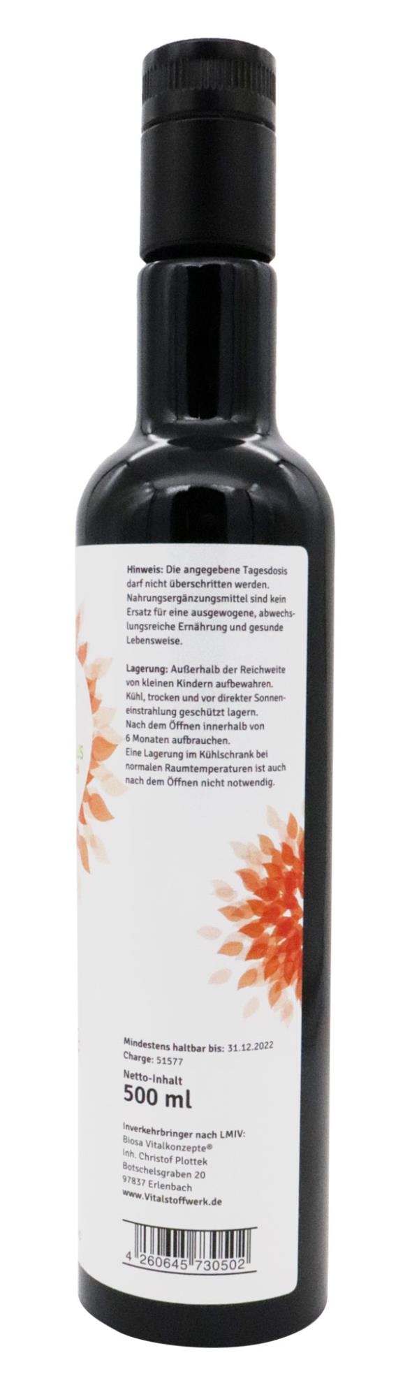 Einnahmeempfehlung: 10ml täglich unverdünnt trinken. Bitte immer leicht schütteln, um die Inhaltsstoffe gut gemischt zu haben.