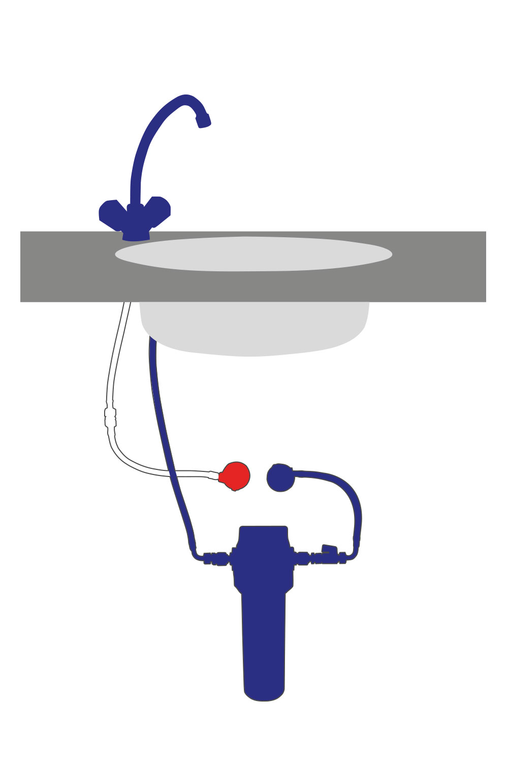 Alvito Einbau-FilterSystem inkl. Schlauchsatz mit Spezial-T-Stück, 90°-Bögen, Absperrventil, hochwertigen Steckkupplungen, Rückflussverhinderer und Wandhalter aus Edelstahl.