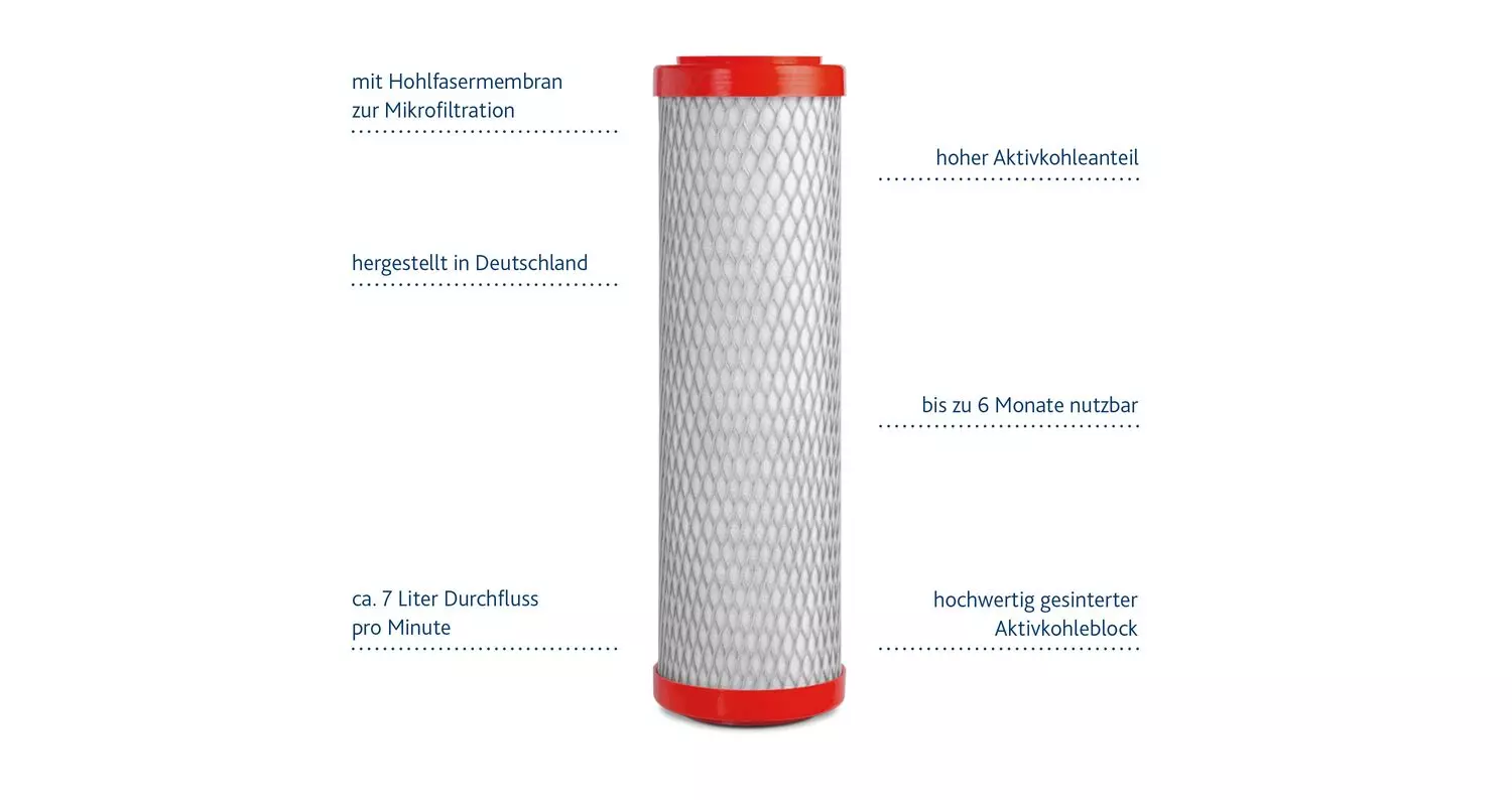 | Filterfeinheit Aktivkohleblock | 1,50 μm absolut |