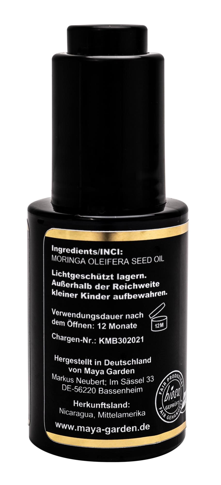 Inhaltsstoffe: 100% reines, unraffiniertes Moringaöl, natürlich wertvoller Anbau.