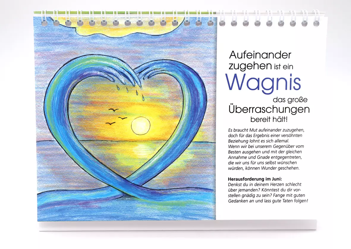 12 Türen, die unsere Herzen öffnen Ein bunter Kalender für das ganze Jahr mit Anregungen und Übungen auf unser Herz und die Herzen anderer achtzugeben und hinein zu fühlen, was unser Herz bewegt.